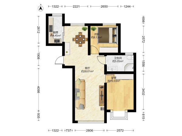 房屋戶型: 2 室2廳 1 廚1衛(wèi)